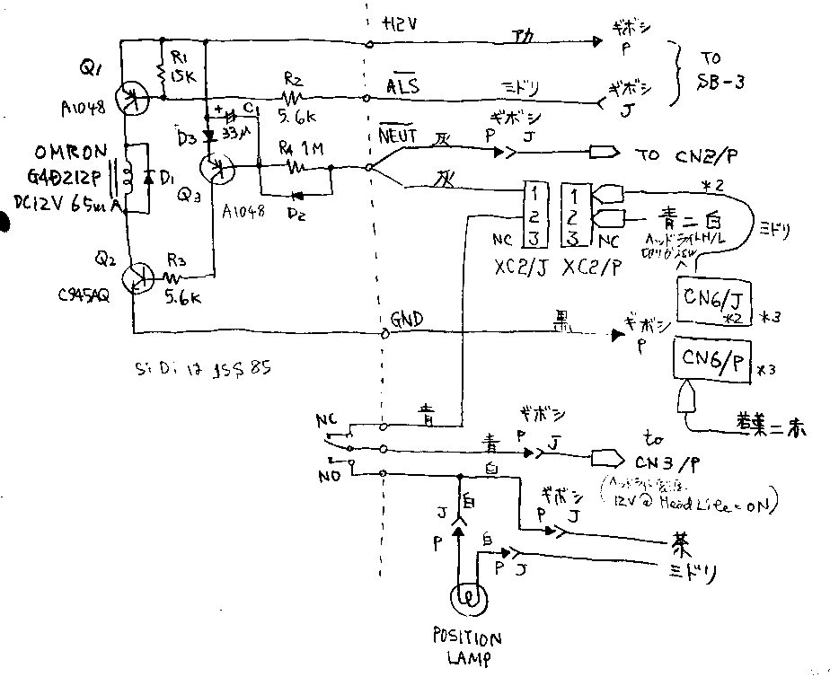 ギヤをニュートラルに入れても,すぐにポジション・ランプに切り替えないのは,夜間走行中にニュートラルに誤って入ったときでもブラックアウトしないようにです.