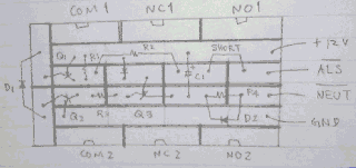 ALS-1のプリント・パターン図(ALS-1AはダイオードD3を追加する)