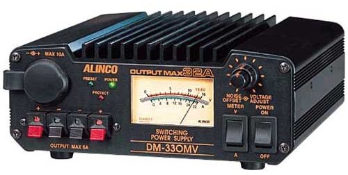 オススメはアルインコ社のDM-330MVです.出力電圧は5〜15V可変,出力電流は最大で連続30A(間欠で最大32A)と強力でありながら,スイッチング電源のため重量は約2kgと超軽量です.アマチュア無線機メーカーなので,無線機での使用を想定してスイッチング周波数を少しだけ可変してスイッチング・ノイズを使用周波数からずらせる機能があります.