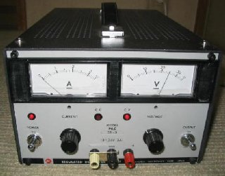 私が愛用しているのは,たぶん30年選手のPAC 35-3(菊水電子)です.0〜35V,0〜3AのCVCCです.また,ARR-1の動作チェックの写真に写っているのは6002A(ヒューレット・パッカード)で,0〜50V,0〜10Aです.回路の動作チェックから,バイク用や自動車用のバッテリーの充電にも利用しています.0Vから可変できるので,乾電池の放電終止電圧相当の0.85Vで動作させたり,12V動作の機器が何Vまで電圧低下しても大丈夫か…なんていうのも簡単に調べられます.