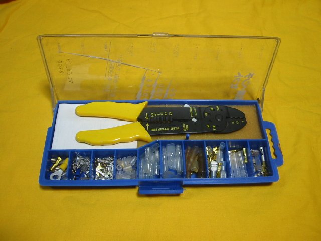 安物です.ディスカウント店で(20年近く前に)800円で購入.プロが使う圧着用ハンド・ツールは,どんな力で握っても同じ圧着力で接続される優れものですが,こいつは単なるペンチみたいなものなので,かなり力を加えないとうまく圧着できません.とはいえラジオ・ペンチなどで,いいかげんに圧着するよりはましです.